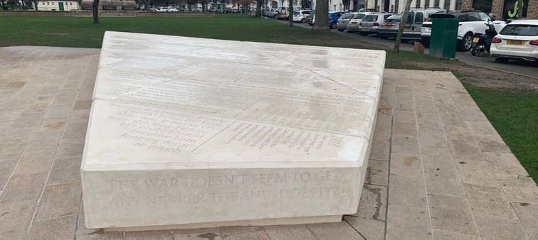Triangular memorial with text detail for Brixton resident Cherry Groce who was wrongfully shot by police in 1985